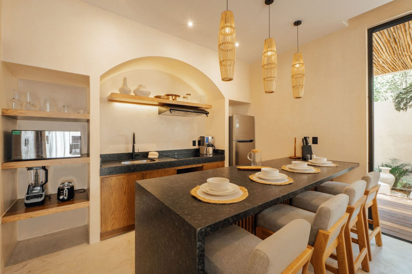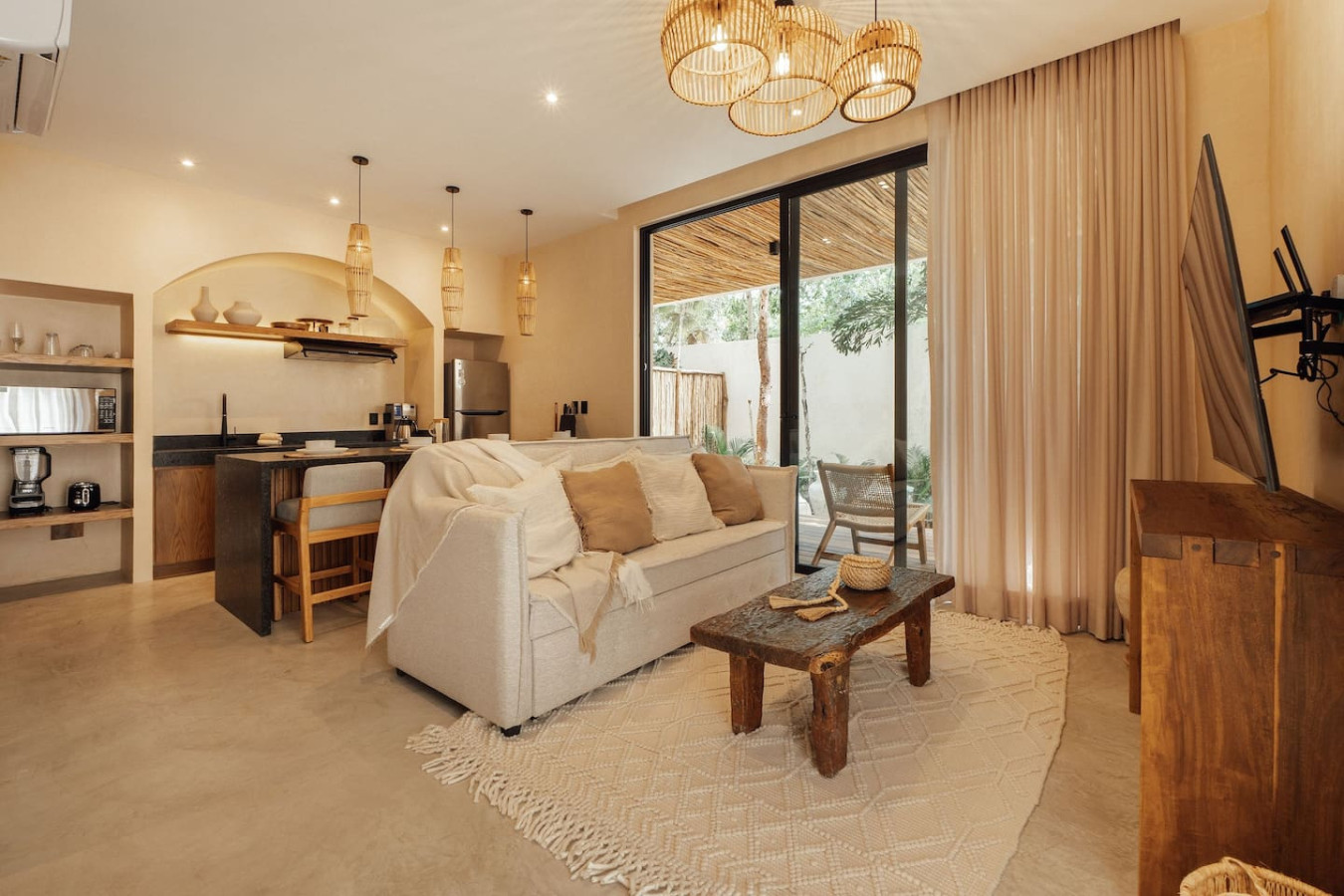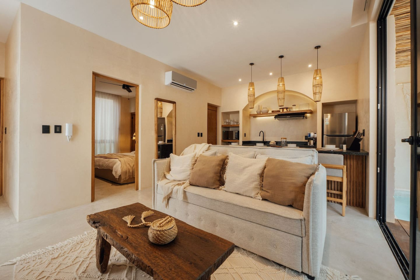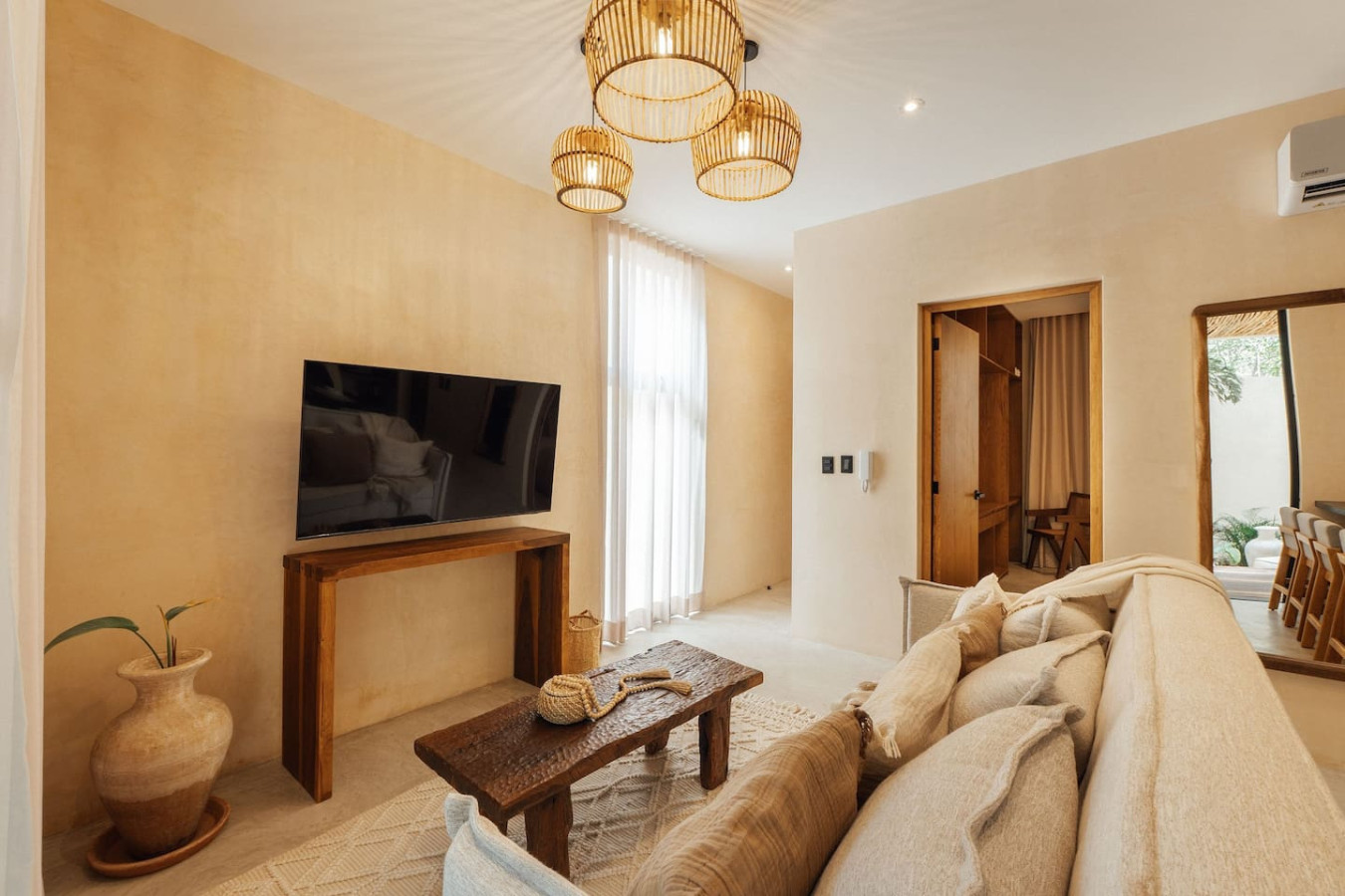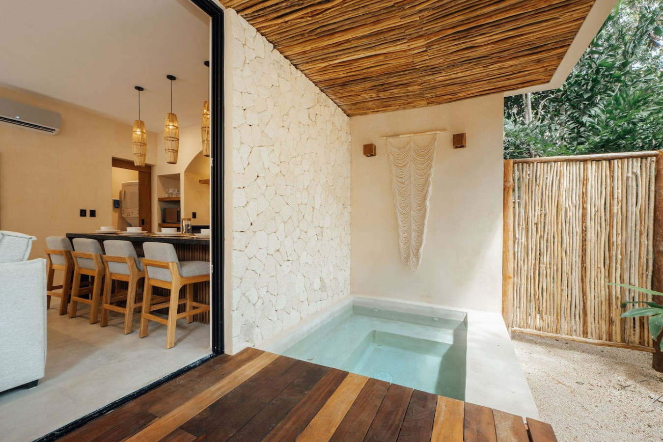 / nightStep into White Serenity, where neutral tones and soft textures create an ambiance of calm and refinement. This exclusive ground-floor garden unit features a private plunge pool surrounded by lush greenery. Inside, the luxurious design in whites and beiges complements high-quality appliances, a fully equipped kitchen, and a plush king-sized bed. The sofa bed comfortably accommodates additional guests. White Serenity invites you to indulge in effortless luxury. Washer/Dryer and 2 Smart TV 55 in. Experience the magic of Tulum at Satori, nestled just 6 minutes from the main avenue and 1 km into the jungle, providing the perfect blend of tranquility and easy access to the action. Only 3.5 km away, dive into the vibrant hotel zone, with its numerous beach clubs lining the stunning Caribbean coast. The route from Tulum Avenue offers convenient access to shops, restaurants, pharmacies, and a gas station. For a lively evening, the renowned Calle 7 in La Veleta, with its eclectic mix of restaurants, bars, and boutiques, is just a short trip away. Experience the magic of Tulum at Satori, nestled just 6 minutes from the main avenue and 1 km into the jungle, providing the perfect blend of tranquility and easy access to the action. Only 3.5 km away, dive into the vibrant hotel zone, with its numerous beach clubs lining the stunning Caribbean coast. The route from Tulum Avenue offers convenient access to shops, restaurants, pharmacies, and a gas station. For a lively evening, the renowned Calle 7 in La Veleta, with its eclectic mix of restaurants, bars, and boutiques, is just a short trip away. Your Stay Essentials Housekeeping: Complimentary Housekeeping: Enjoy a free cleaning service every four days of your stay. This includes tidying up the bathrooms and kitchen, making the beds, and cleaning the floors. Extra Cleaning: If you’d like a more thorough cleaning or more frequent service, just let your concierge know. (Additional fees apply and are subject to availability). Bedding & Towels: Linen Changes: For stays longer than six days, fresh linens and towels will be provided during your complimentary cleaning. In-Unit Laundry: For your convenience, each unit has a washer and dryer. You can also request extra linen changes through your concierge for a small fee. Electricity: Power Supply Notes: Due to ongoing development in Tulum, occasional power outages may occur due to work by the CFE (Mexico's Federal Electricity Commission). These outages are sometimes announced in advance, but schedules can change. During the rainy and hurricane seasons, outages can be more frequent and last longer. What We Provide: We have flashlights and rechargeable fans available for your use. Electricity Usage: We’ll take a meter reading at check-in and check-out. Your reservation includes ___ kw/h per day. Usage beyond this will be charged at __ per kw/h. Internet Access: Wi-Fi Details: You’ll receive the Wi-Fi network name and password upon arrival. Tech Support: Please contact your concierge if you experience any issues with the internet. Possible Disruptions: Internet service may be affected during heavy rains and hurricanes. Water: Tap Water: The tap water is not suitable for drinking or cooking, but it’s perfectly safe for brushing your teeth and showering. Waste Disposal: Recycling & Trash: Each unit has separate bins for organic and inorganic waste. Trash Removal: Our housekeeping staff will empty the trash during your complimentary cleanings. There are also larger bins available for guests outside the building. Air Conditioning: Optimal AC Use: The ideal setting for the mini-split AC units in this area is 24°C (75°F). Maintenance Requests: Please report any issues with the AC immediately. Responsible Use: Please turn off the AC/heating when you leave the unit. Hot & Cold Water: Faucet Operation: In Mexico, turning the tap to the right is for cold water, and turning it to the left is for hot water. Hot Water Warm-Up: Please note that it may take a few minutes for the hot water to come through. Your Well-being is Our Priority: At Satori, we value communication with our guests and look forward to meeting you. We will be available at the property from 9:00 a.m. to 6:00 p.m. to provide you with the best service. For your convenience, you can also contact us via phone or text message. In case of an emergency outside of these hours, please contact any member of our staff or the security guard, who will be ready to assist you. Relaxed among nature It is advisable to rent a car, or motorcycle for easy access to the beach and town. Bikes rented on site. Welcome to Satori Tulum, an exclusive sanctuary nestled in the heart of Tulum’s lush jungle. Here, luxury meets nature in perfect harmony, offering you an unparalleled getaway that blends refined architectural design, high-quality natural materials, and vibrant greenery. Immerse yourself in an Insta-worthy oasis featuring two spectacular main pools, thoughtfully curated spaces, and a serene ambiance designed to inspire relaxation and connection. While our location is a quick 7-minute drive from both Tulum’s vibrant town center and pristine beaches, the tranquil jungle setting ensures a peaceful retreat from the bustle. Please note that construction is ongoing nearby, with light noise possible between 9 am and 7 pm. However, the serenity of Satori Tulum and its wealth of amenities will undoubtedly make your stay memorable.