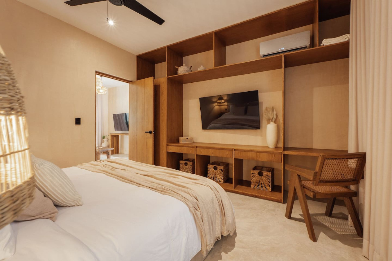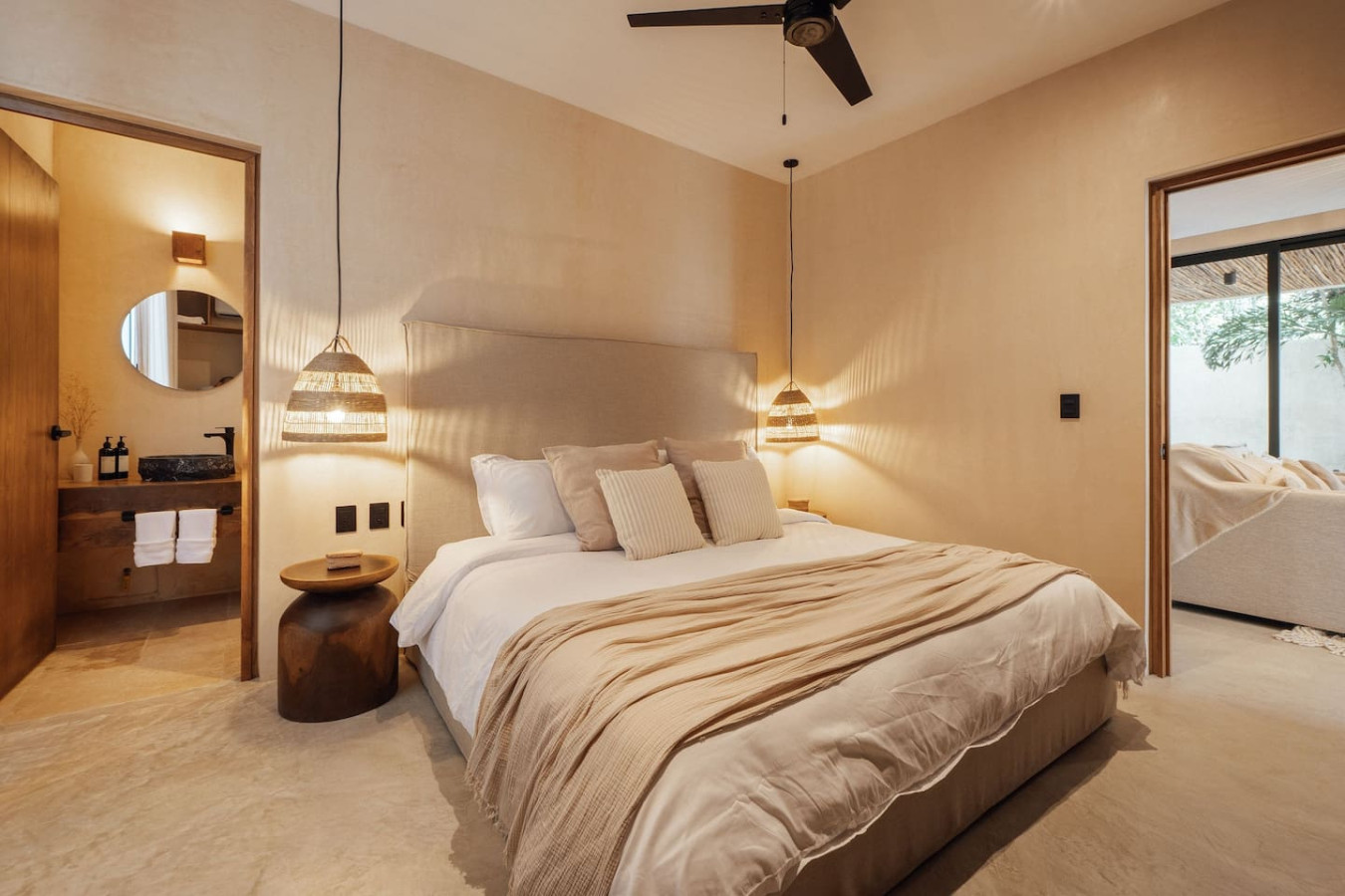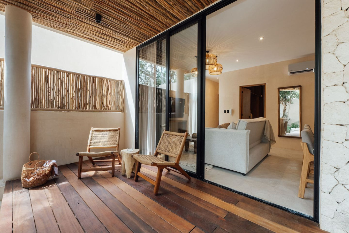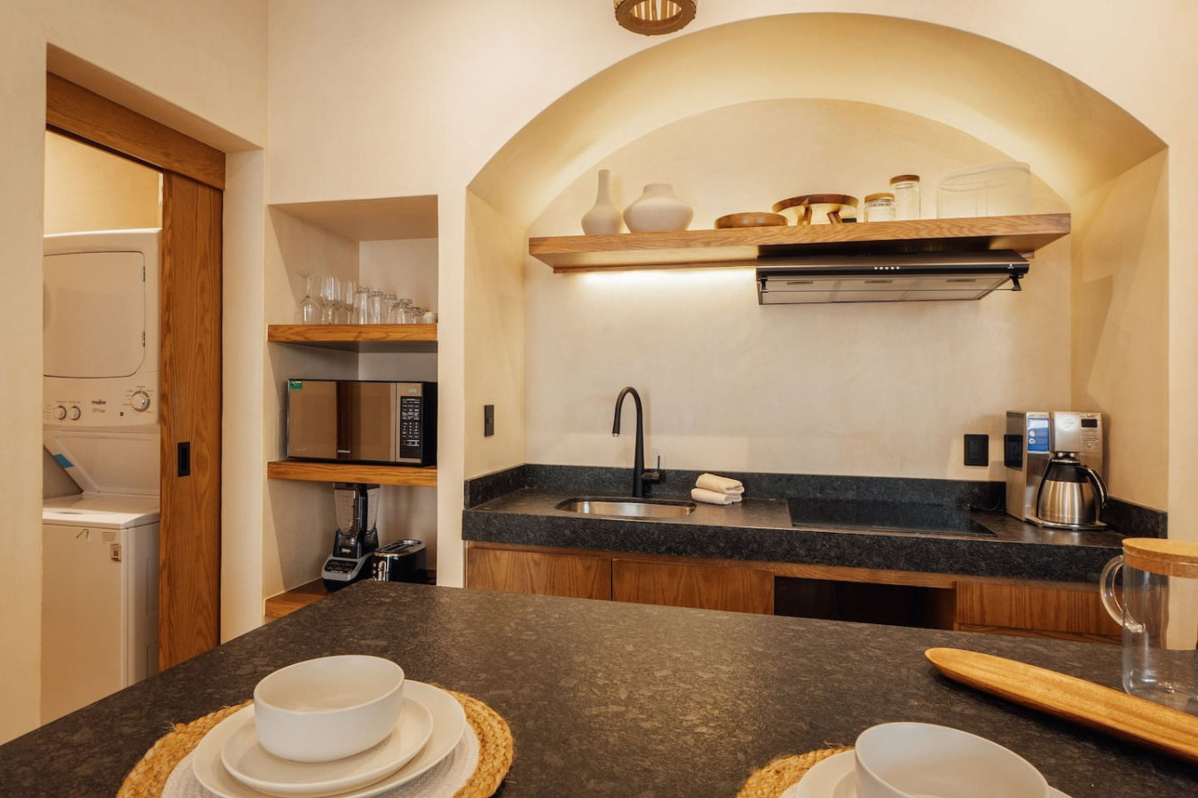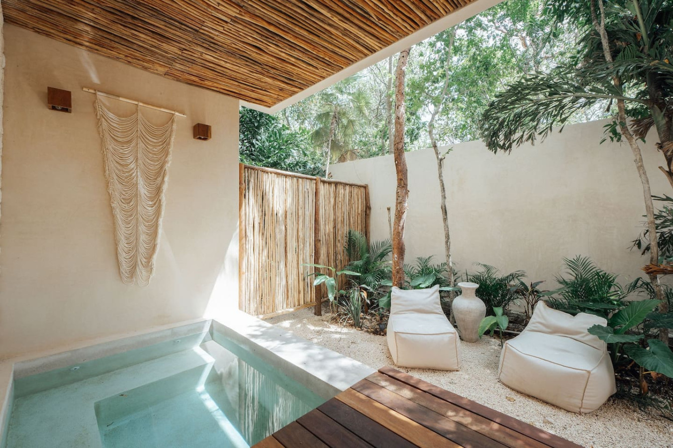 / nightStep into White Serenity, where neutral tones and soft textures create an ambiance of calm and refinement. This exclusive ground-floor garden unit features a private plunge pool surrounded by lush greenery. Inside, the luxurious design in whites and beiges complements high-quality appliances, a fully equipped kitchen, and a plush king-sized bed. The sofa bed comfortably accommodates additional guests. White Serenity invites you to indulge in effortless luxury. Washer/Dryer and 2 Smart TV 55 in. Experience the magic of Tulum at Satori, nestled just 6 minutes from the main avenue and 1 km into the jungle, providing the perfect blend of tranquility and easy access to the action. Only 3.5 km away, dive into the vibrant hotel zone, with its numerous beach clubs lining the stunning Caribbean coast. The route from Tulum Avenue offers convenient access to shops, restaurants, pharmacies, and a gas station. For a lively evening, the renowned Calle 7 in La Veleta, with its eclectic mix of restaurants, bars, and boutiques, is just a short trip away. Experience the magic of Tulum at Satori, nestled just 6 minutes from the main avenue and 1 km into the jungle, providing the perfect blend of tranquility and easy access to the action. Only 3.5 km away, dive into the vibrant hotel zone, with its numerous beach clubs lining the stunning Caribbean coast. The route from Tulum Avenue offers convenient access to shops, restaurants, pharmacies, and a gas station. For a lively evening, the renowned Calle 7 in La Veleta, with its eclectic mix of restaurants, bars, and boutiques, is just a short trip away. Your Stay Essentials Housekeeping: Complimentary Housekeeping: Enjoy a free cleaning service every four days of your stay. This includes tidying up the bathrooms and kitchen, making the beds, and cleaning the floors. Extra Cleaning: If you’d like a more thorough cleaning or more frequent service, just let your concierge know. (Additional fees apply and are subject to availability). Bedding & Towels: Linen Changes: For stays longer than six days, fresh linens and towels will be provided during your complimentary cleaning. In-Unit Laundry: For your convenience, each unit has a washer and dryer. You can also request extra linen changes through your concierge for a small fee. Electricity: Power Supply Notes: Due to ongoing development in Tulum, occasional power outages may occur due to work by the CFE (Mexico's Federal Electricity Commission). These outages are sometimes announced in advance, but schedules can change. During the rainy and hurricane seasons, outages can be more frequent and last longer. What We Provide: We have flashlights and rechargeable fans available for your use. Electricity Usage: We’ll take a meter reading at check-in and check-out. Your reservation includes ___ kw/h per day. Usage beyond this will be charged at __ per kw/h. Internet Access: Wi-Fi Details: You’ll receive the Wi-Fi network name and password upon arrival. Tech Support: Please contact your concierge if you experience any issues with the internet. Possible Disruptions: Internet service may be affected during heavy rains and hurricanes. Water: Tap Water: The tap water is not suitable for drinking or cooking, but it’s perfectly safe for brushing your teeth and showering. Waste Disposal: Recycling & Trash: Each unit has separate bins for organic and inorganic waste. Trash Removal: Our housekeeping staff will empty the trash during your complimentary cleanings. There are also larger bins available for guests outside the building. Air Conditioning: Optimal AC Use: The ideal setting for the mini-split AC units in this area is 24°C (75°F). Maintenance Requests: Please report any issues with the AC immediately. Responsible Use: Please turn off the AC/heating when you leave the unit. Hot & Cold Water: Faucet Operation: In Mexico, turning the tap to the right is for cold water, and turning it to the left is for hot water. Hot Water Warm-Up: Please note that it may take a few minutes for the hot water to come through. Your Well-being is Our Priority: At Satori, we value communication with our guests and look forward to meeting you. We will be available at the property from 9:00 a.m. to 6:00 p.m. to provide you with the best service. For your convenience, you can also contact us via phone or text message. In case of an emergency outside of these hours, please contact any member of our staff or the security guard, who will be ready to assist you. Relaxed among nature It is advisable to rent a car, or motorcycle for easy access to the beach and town. Bikes rented on site. Welcome to Satori Tulum, an exclusive sanctuary nestled in the heart of Tulum’s lush jungle. Here, luxury meets nature in perfect harmony, offering you an unparalleled getaway that blends refined architectural design, high-quality natural materials, and vibrant greenery. Immerse yourself in an Insta-worthy oasis featuring two spectacular main pools, thoughtfully curated spaces, and a serene ambiance designed to inspire relaxation and connection. While our location is a quick 7-minute drive from both Tulum’s vibrant town center and pristine beaches, the tranquil jungle setting ensures a peaceful retreat from the bustle. Please note that construction is ongoing nearby, with light noise possible between 9 am and 7 pm. However, the serenity of Satori Tulum and its wealth of amenities will undoubtedly make your stay memorable.