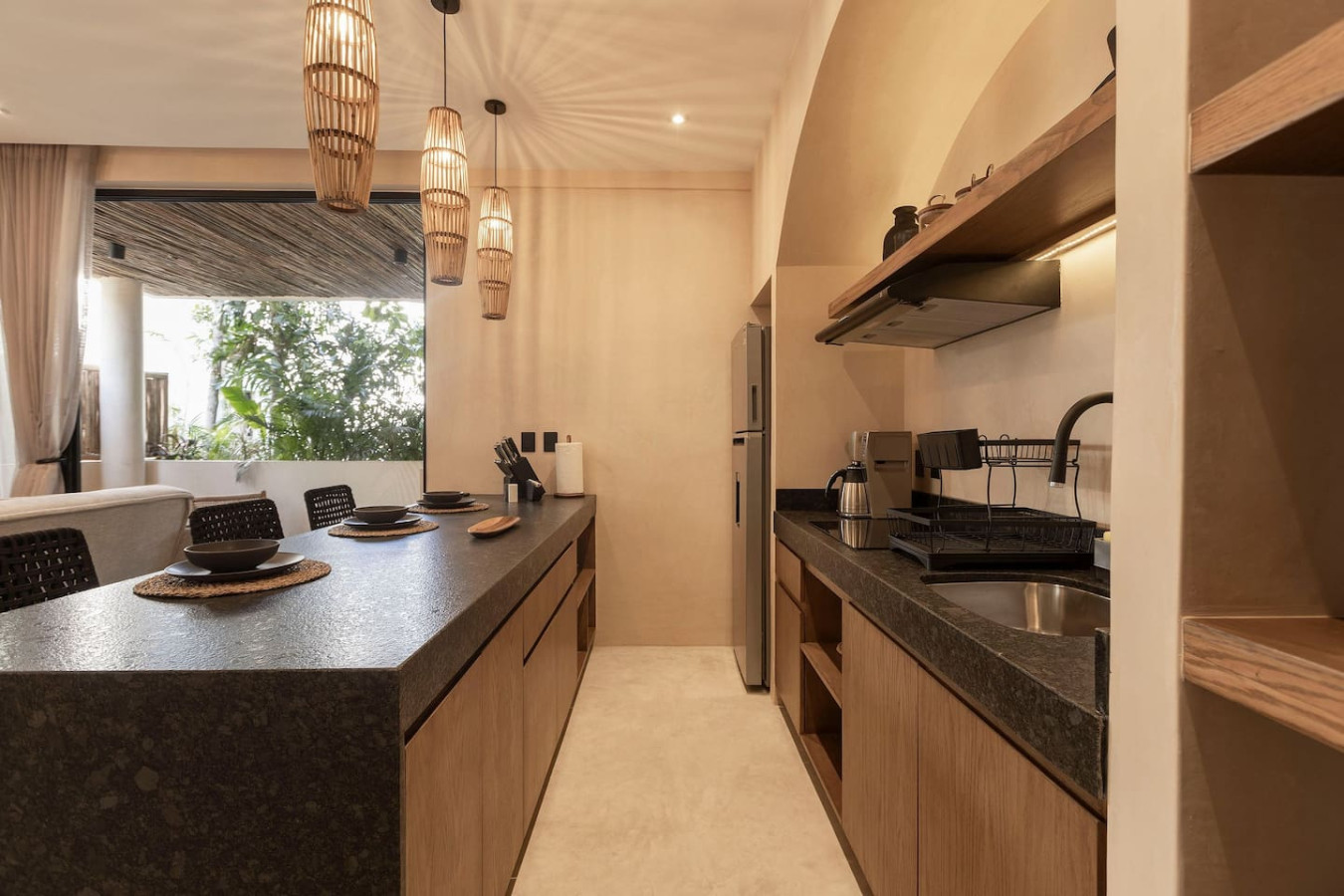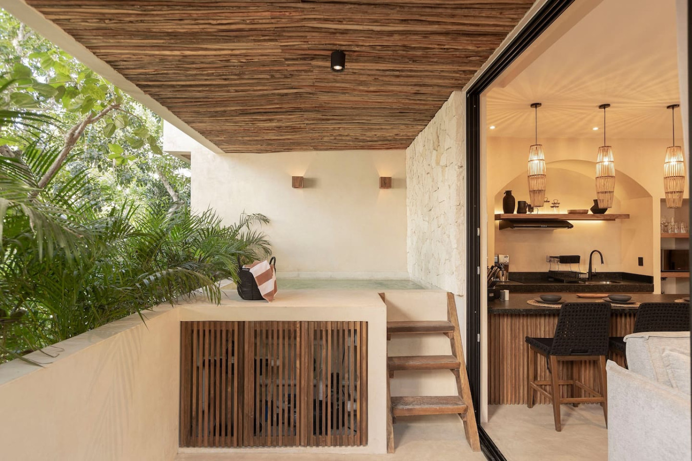/ nightWelcome to your Tulum escape! Each unit boasts a private plunge pool, inviting you to relax and take in either the lush greenery of Tulum’s jungle. This unit includes a fully equipped kitchen, high-end appliances, a plush king-sized bed, and a dedicated workspace for digital nomads. The sofa bed adds flexibility for families or small groups of up to four. A washer and dryer complete this elegant retreat, designed for both comfort and sophistication in the heart of Tulum. Experience the magic of Tulum at Satori, nestled in Region 15 just 6 minutes from the main avenue and 1 km into the jungle, providing the perfect blend of tranquility and easy access to the action. Only 3.5 km away, dive into the vibrant hotel zone, with its numerous beach clubs lining the stunning Caribbean coast. The route from Tulum Avenue offers convenient access to shops, restaurants, pharmacies, and a gas station. For a lively evening, the renowned Calle 7 in La Veleta, with its eclectic mix of restaurants, bars, and boutiques, is just a short trip away. Arriving at Your Tulum Escape: We want your arrival to be as seamless as possible. You’ll find convenient parking available directly in front of the condo. We recommend you download the directions and the internet password for the common areas so you can access the access code for your accommodation Check-in: 3:00 PM Check-out: 11:00 AM Housekeeping: Complimentary Housekeeping: Enjoy a free cleaning service every three days of your stay. This includes tidying up the bathrooms and kitchen, making the beds, and cleaning the floors. Extra Cleaning: If you’d like a more thorough cleaning or more frequent service, just let your concierge know. (Additional fees apply and are subject to availability). Bedding & Towels: Linen Changes: For stays longer than six days, fresh linens and towels will be provided during your complimentary cleaning. In-Unit Laundry: For your convenience, each unit has a washer and dryer. You can also request extra linen changes through your concierge for a small fee. Electricity: Power Supply Notes: Due to ongoing development in Tulum, occasional power outages may occur due to work by the CFE (Mexico's Federal Electricity Commission). These outages are sometimes announced in advance, but schedules can change. During the rainy and hurricane seasons, outages can be more frequent and last longer. What We Provide: We have flashlights and rechargeable fans available for your use. Electricity Usage: We’ll take a meter reading at check-in and check-out. Your reservation includes ___ kw/h per day. Usage beyond this will be charged at __ per kw/h. Internet Access: Wi-Fi Details: You’ll receive the Wi-Fi network name and password upon arrival. Tech Support: Please contact your concierge if you experience any issues with the internet. Possible Disruptions: Internet service may be affected during heavy rains and hurricanes. Water: Tap Water: The tap water is not suitable for drinking or cooking, but it’s perfectly safe for brushing your teeth and showering. Waste Disposal: Recycling & Trash: Each unit has separate bins for organic and inorganic waste. Trash Removal: Our housekeeping staff will empty the trash during your complimentary cleanings. There are also larger bins available for guests outside the building. Air Conditioning: Optimal AC Use: The ideal setting for the mini-split AC units in this area is 24°C (75°F). Maintenance Requests: Please report any issues with the AC immediately. Responsible Use: Please turn off the AC/heating when you leave the unit. Hot & Cold Water: Faucet Operation: In Mexico, turning the tap to the right is for cold water, and turning it to the left is for hot water. Hot Water Warm-Up: Please note that it may take a few minutes for the hot water to come through. Your Well-being is Our Priority: At Satori, we value communication with our guests and look forward to meeting you. We will be available at the property from 9:00 a.m. to 6:00 p.m. to provide you with the best service. In case of an emergency outside of these hours, please contact any member of our staff or the security guard, who will be ready to assist you. Relaxed among nature It is advisable to rent a car, or motorcycle for easy access to the beach and town. Bikes rented on site. Welcome to Satori Tulum, an exclusive sanctuary nestled in the heart of Tulum’s lush jungle. Here, luxury meets nature in perfect harmony, offering you an unparalleled getaway that blends refined architectural design, high-quality natural materials, and vibrant greenery. Immerse yourself in an oasis featuring two spectacular main pools, thoughtfully curated spaces, and a serene ambiance designed to inspire relaxation and connection. While our location is a quick 7-minute drive from both Tulum’s vibrant town center and pristine beaches, the tranquil jungle setting ensures a peaceful retreat from the bustle. Please note that construction is ongoing nearby, with light noise possible between 9 am and 7 pm. However, the serenity of Satori Tulum and its wealth of amenities will undoubtedly make your stay memorable.