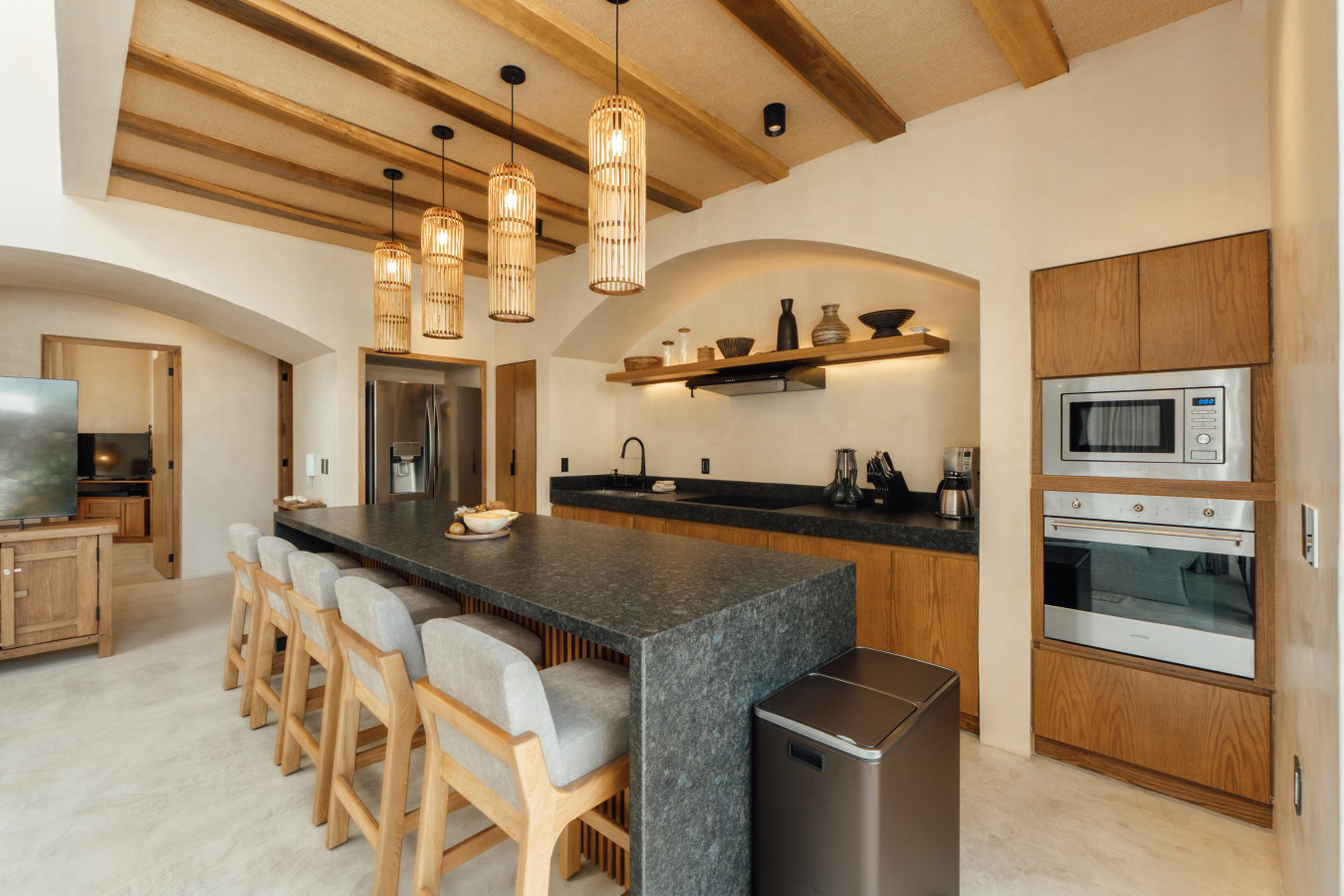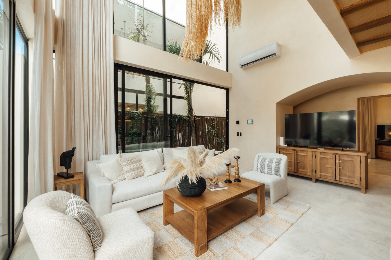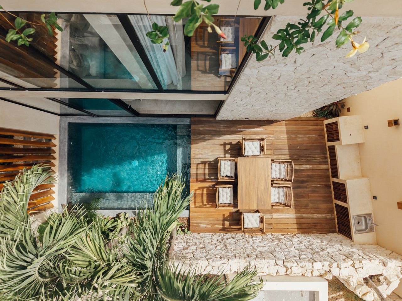 / nightEscape to Satori Tulum, a jungle sanctuary blending luxury and nature. Two stunning pools, curated spaces, and tranquil ambiance create an oasis. Just 7 minutes from Tulum town and beaches, Satori offers both seclusion and accessibility (car recommended). Satori's relaxing and peaceful jungle setting will freshen up your spirit! Experience the magic of Tulum at Satori, nestled just 4 minutes from the main avenue and 1 km into the jungle, providing the perfect blend of tranquility and easy access to the action. Only 3.5 km away, dive into the vibrant hotel zone, with its numerous beach clubs lining the stunning Caribbean coast. The route from Tulum Avenue offers convenient access to shops, restaurants, pharmacies, and a gas station. For a lively evening, the renowned Calle 7 in La Veleta, with its eclectic mix of restaurants, bars, and boutiques, is just a short trip away. Relax and Enjoy Our Common Spaces: Make the most of our common areas, open from 8:00 a.m. to 9:00 p.m. We maintain quiet hours from 9:00 p.m. to 9:00 a.m. so everyone can enjoy the tranquil surroundings. Your Peace of Mind: Your safety and security are important to us. We provide overnight security, fire extinguishers, and readily accessible emergency contact information for your convenience. Arriving at Your Tulum Escape: We want your arrival to be as seamless as possible. You’ll find convenient parking available directly in front of the condo. If you are arriving by taxi or private transfer, you can be dropped off right at the entrance, where our team will be waiting to warmly welcome you and show you around. Your Stay Essentials Check-in: 4:00 PM to 6:00 PM. Our staff will be available to greet you and hand over the keys in person. After 6:00 PM: Check-in is done at the reception with the security guard. We will send all the instructions to access your accommodation. Housekeeping: Complimentary Housekeeping: Enjoy a free cleaning service every seven days of your stay. This includes tidying up the bathrooms and kitchen, making the beds, and cleaning the floors. Extra Cleaning: If you’d like a more thorough cleaning or more frequent service, just let your concierge know. (Additional fees apply and are subject to availability). Concierge: Your reservations includes full access to our in-house concierge team, ready to coordinate every aspect of your trip from private chefs and massages to transportation and scooter rentals. We work exclusively with Tulum’s most trusted vendors to ensure quality and consistency. Please note that for your comfort and safety, only our pre-approved service providers are permitted on property. Bedding & Towels: Linen Changes: For stays longer than seven days, fresh linens and towels will be provided during your complimentary cleaning. In-Unit Laundry: For your convenience, each unit has a washer and dryer. You can also request extra linen changes through your concierge for a small fee. Electricity: Power Supply Notes: Due to ongoing development in Tulum, occasional power outages may occur due to work by the CFE (Mexico's Federal Electricity Commission). These outages are sometimes announced in advance, but schedules can change. During the rainy and hurricane seasons, outages can be more frequent and last longer. What We Provide: We have flashlights and rechargeable fans available for your use. Electricity Usage: We are very mindful of our planet, we ask that when you leave the apartment, you please turn-off all the air conditioners, since they consume a lot of electricity, even though they are inverters. Internet Access: Wi-Fi Details: You’ll receive the Wi-Fi network name and password upon arrival. Tech Support: Please contact your concierge if you experience any issues with the internet. Possible Disruptions: Internet service may be affected during heavy rains and hurricanes. Water: Tap Water: The tap water is not suitable for drinking or cooking, but it’s perfectly safe for brushing your teeth and showering. Waste Disposal: Recycling & Trash: Each unit has separate bins for organic and inorganic waste. Trash Removal: Our housekeeping staff will empty the trash during your complimentary cleanings. There are also larger bins available for guests outside the building. Air Conditioning: Optimal AC Use: The ideal setting for the mini-split AC units in this area is 24°C (75°F). Maintenance Requests: Please report any issues with the AC immediately. Responsible Use: Please turn off the AC/heating when you leave the unit. Hot & Cold Water:Faucet Operation: In Mexico, turning the tap to the right is for cold water, and turning it to the left is for hot water. Hot Water Warm-Up: Please note that it may take a few minutes for the hot water to come through. Your Well-being is Our Priority: At Satori, we value communication with our guests and look forward to meeting you. We will be available at the property from 9:00 a.m. to 6:00 p.m. to provide you with the best service. In case of an emergency outside of these hours, please contact any member of our staff or the security guard, who will be ready to assist you. Satori is tucked away in a quiet, secure area of Tulum’s jungle—perfect for guests seeking relaxation and nature. We cater to those who value privacy, calm, and connection. Just a short drive from the beach and main attractions, yet worlds away from the noise. We highly recommend that you rent a car or motorcycle to experience all Tulum has to offer at your convenience. Our concierge can help you with that. Tulum's taxis are expensive. Step into the refined luxury of Villa 10, a 4-bedroom sanctuary that redefines group travel in Tulum. Designed to host up to 10 guests, this villa blends contemporary elegance with warm tropical touches, creating the perfect setting for families, friends, or design-conscious travelers seeking both comfort and sophistication. Every space has been curated to offer harmony and style: expansive living and dining areas open seamlessly to the ou