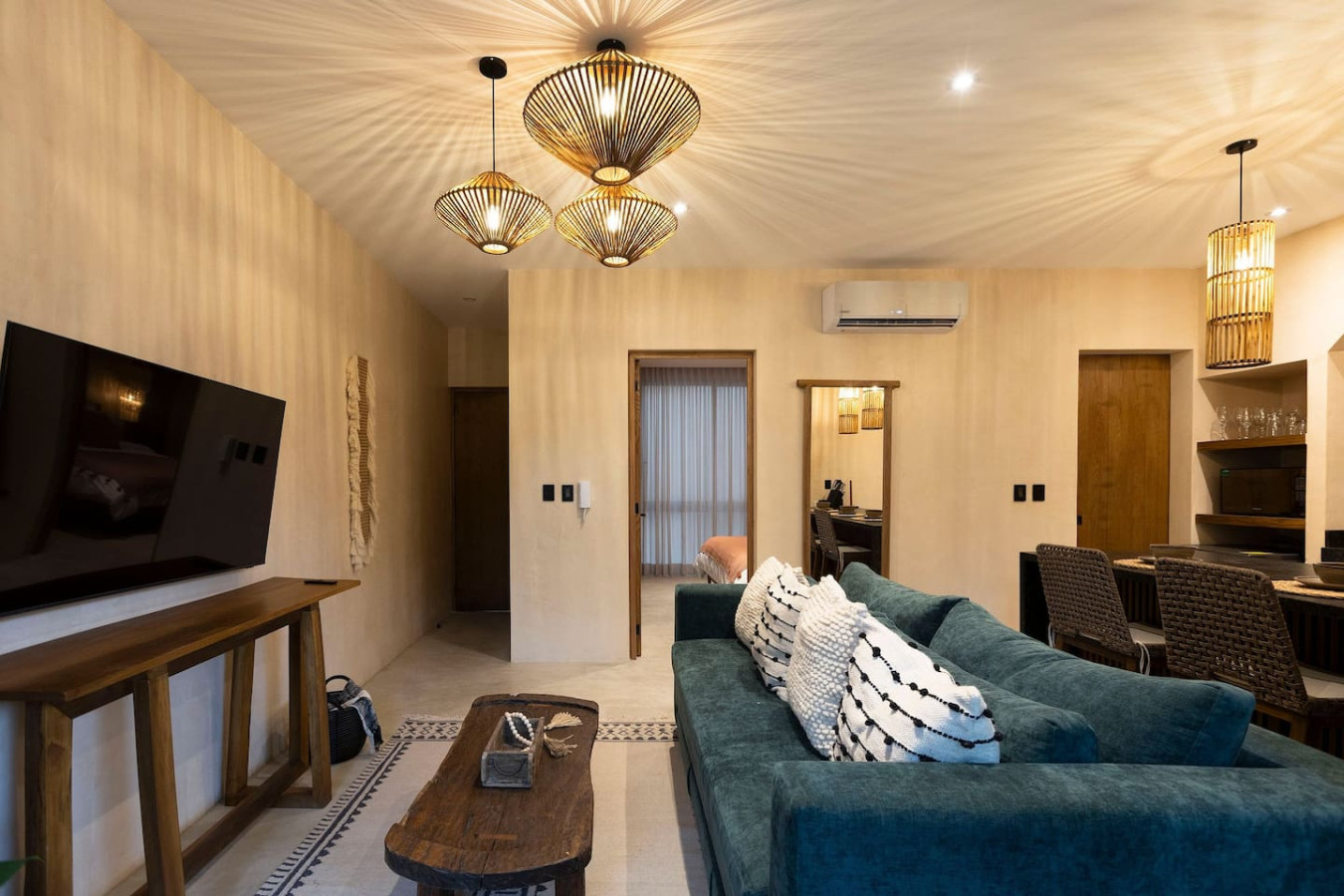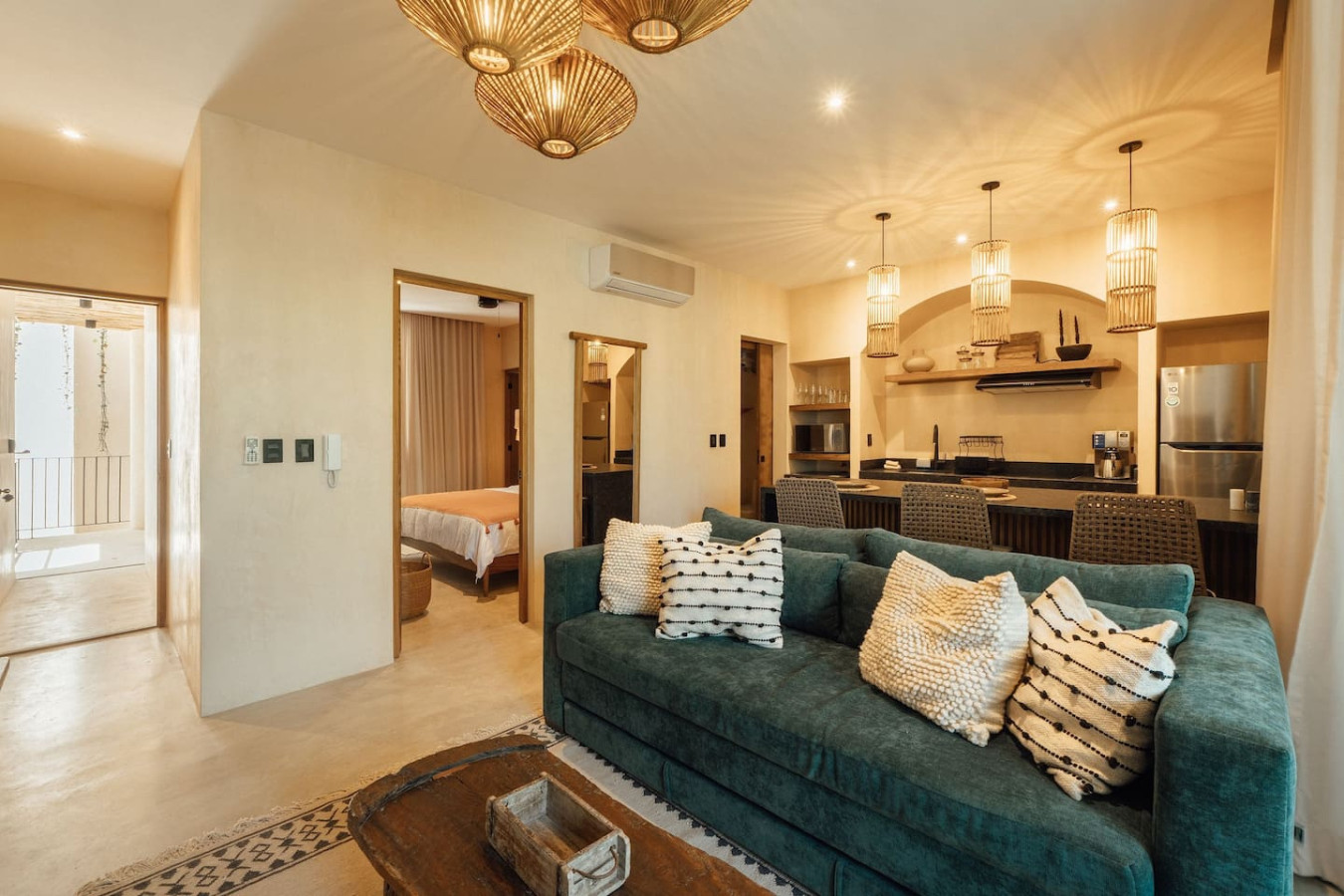 / nightDiscover the Terracotta Oasis: Warmth & bold charm collide! Rich terracotta hues & a vibrant green sofa bed infuse energy & style. Unwind in your private plunge pool w/ lush Tulum jungle views. Inside, find modern luxury: fully equipped kitchen, premium appliances, plush king-sized bed, & a dedicated desk for digital nomads. Space for 4 guests, washer/dryer included. Your vibrant escape awaits! Experience the magic of Tulum at Satori, nestled just 6 minutes from the main avenue and 1 km into the jungle, providing the perfect blend of tranquility and easy access to the action. Only 3.5 km away, dive into the vibrant hotel zone, with its numerous beach clubs lining the stunning Caribbean coast. The route from Tulum Avenue offers convenient access to shops, restaurants, pharmacies, and a gas station. For a lively evening, the renowned Calle 7 in La Veleta, with its eclectic mix of restaurants, bars, and boutiques, is just a short trip away. Arriving at Your Tulum Escape: We want your arrival to be as seamless as possible. You’ll find convenient parking available directly in front of the condo. If you are arriving by taxi or private transfer, you can be dropped off right at the entrance, where our team will be waiting to warmly welcome you and show you around. Check-in: 3:00 PM to 5:00 PM. Our staff will be available to greet you and hand over the keys in person. After 6:00 PM: Check-in is done at the reception with the security guard. We will send all the instructions to access your accommodation. Housekeeping: Complimentary Housekeeping: Enjoy a free cleaning service every seven days of your stay. This includes tidying up the bathrooms and kitchen, making the beds, and cleaning the floors. Extra Cleaning: If you’d like a more thorough cleaning or more frequent service, just let your concierge know. (Additional fees apply and are subject to availability). Bedding & Towels: Linen Changes: For stays longer than seven days, fresh linens and towels will be provided during your complimentary cleaning. In-Unit Laundry: For your convenience, each unit has a washer and dryer. You can also request extra linen changes through your concierge for a small fee. Electricity: Power Supply Notes: Due to ongoing development in Tulum, occasional power outages may occur due to work by the CFE (Mexico's Federal Electricity Commission). These outages are sometimes announced in advance, but schedules can change. During the rainy and hurricane seasons, outages can be more frequent and last longer. What We Provide: We have flashlights and rechargeable fans available for your use. Electricity Usage: We’ll take a meter reading at check-in and check-out. Your reservation includes ___ kw/h per day. Usage beyond this will be charged at __ per kw/h. Internet Access: Wi-Fi Details: You’ll receive the Wi-Fi network name and password upon arrival. Tech Support: Please contact your concierge if you experience any issues with the internet. Possible Disruptions: Internet service may be affected during heavy rains and hurricanes. Water: Tap Water: The tap water is not suitable for drinking or cooking, but it’s perfectly safe for brushing your teeth and showering. Waste Disposal: Recycling & Trash: Each unit has separate bins for organic and inorganic waste. Trash Removal: Our housekeeping staff will empty the trash during your complimentary cleanings. There are also larger bins available for guests outside the building. Air Conditioning: Optimal AC Use: The ideal setting for the mini-split AC units in this area is 24°C (75°F). Maintenance Requests: Please report any issues with the AC immediately. Responsible Use: Please turn off the AC/heating when you leave the unit. Hot & Cold Water: Faucet Operation: In Mexico, turning the tap to the right is for cold water, and turning it to the left is for hot water. Hot Water Warm-Up: Please note that it may take a few minutes for the hot water to come through. Your Well-being is Our Priority: At Satori, we value communication with our guests and look forward to meeting you. We will be available at the property from 9:00 a.m. to 6:00 p.m. to provide you with the best service. For your convenience, you can also contact us via phone call or text message. In case of an emergency outside of these hours, please contact any member of our staff or the security guard, who will be ready to assist you. Relaxed among nature It is advisable to rent a car, or motorcycle for easy access to the beach and town. Bikes rented on site. Welcome to Satori Tulum, an exclusive sanctuary nestled in the heart of Tulum’s lush jungle. Here, luxury seamlessly blends with nature, offering an unparalleled escape where architectural elegance, premium natural materials, and verdant greenery converge to create a truly inspiring retreat. Immerse yourself in an Insta-worthy oasis featuring two stunning main pools, meticulously curated spaces, and a tranquil ambiance that invites relaxation and reconnection. Every detail at Satori Tulum has been designed to deliver a sense of harmony, making it the perfect setting for your dream getaway. Conveniently located just a 7-minute drive from Tulum’s vibrant town center and its world-famous beaches, Satori Tulum offers both accessibility and seclusion. To fully enjoy the best of Tulum and its surroundings, we highly recommend having a car during your stay. This will allow you to explore the stunning cenotes, Mayan ruins, and hidden gems at your own pace. Please note: While our jungle haven offers serenity, ongoing construction nearby may produce light noise between 9:00 AM and 7:00 PM. Rest assured, the wealth of amenities and peaceful atmosphere at Satori Tulum will more than make up for it, ensuring a truly unforgettable experience