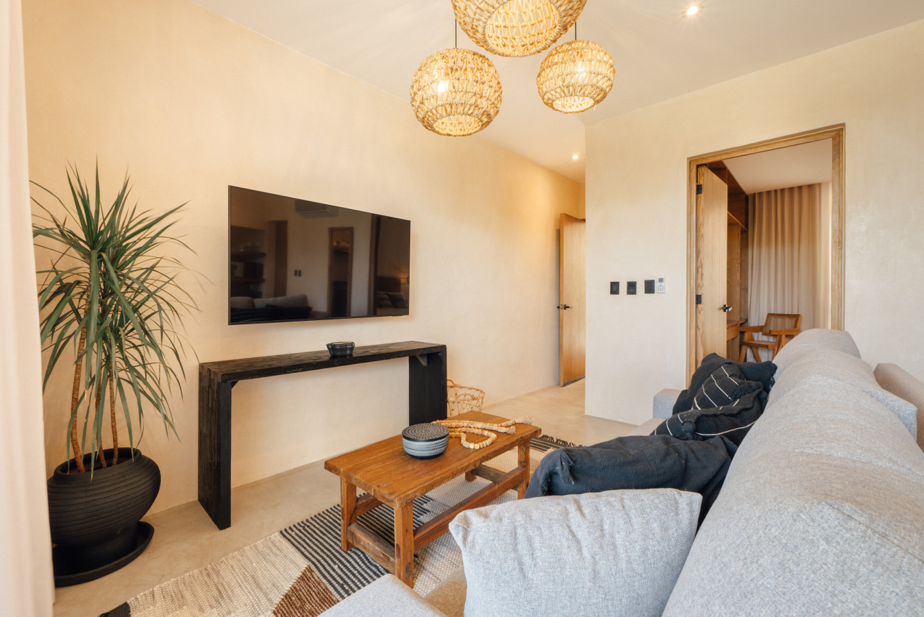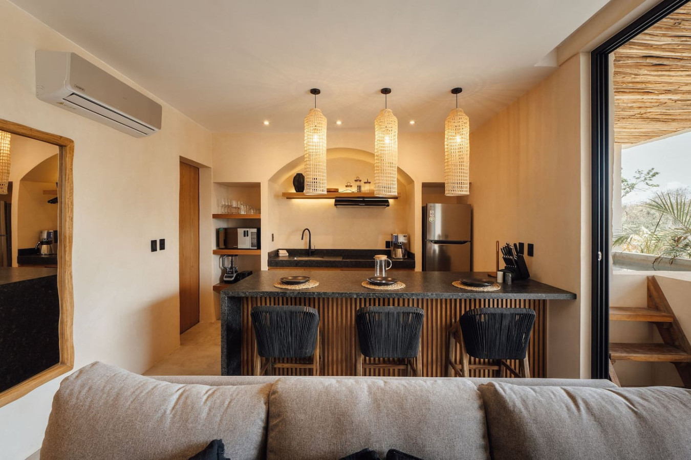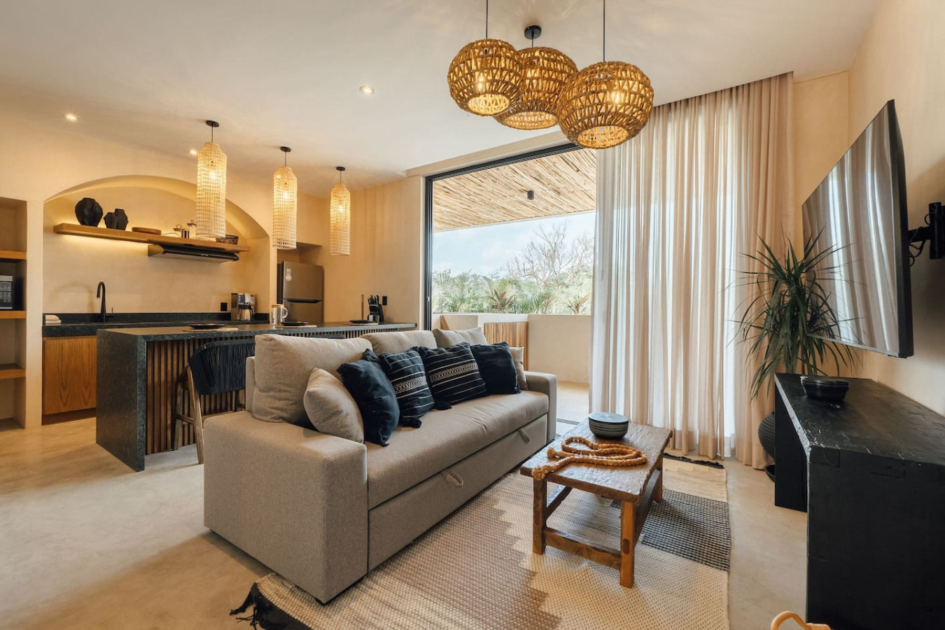 / nightMesmerizing views await you. From the freshness of your private balcony and pool, admire one of Tulum's most iconic pools, and watch glowing sunsets while relaxing with your loved ones. High-quality appliances, full kitchen, dedicated workspace for digital nomads, & plush king bed. Sofa bed sleeps 4. Washer/dryer. Luxury & functionality for an unforgettable Tulum escape. Our common area pools are the most iconic in all Tulum. Chill out watching breathtaking sunsets. Experience the magic of Tulum at Satori, nestled in Region 15 just 6 minutes from the main avenue and 800m into the jungle, providing the perfect blend of tranquility and easy access to the action. Only 3.5 km away, dive into the vibrant hotel zone, with its numerous beach clubs lining the stunning Caribbean coast. The route from Tulum Avenue offers convenient access to shops, restaurants, pharmacies, and a gas station. For a lively evening, the renowned Calle 7 in La Veleta, with its eclectic mix of restaurants, bars, and boutiques, is just a short trip away. Arriving at Your Tulum Escape: We want your arrival to be as seamless as possible. You’ll find convenient parking available directly in front of the condo. If you are arriving by taxi or private transfer, you can be dropped off right at the entrance, where our team will be waiting to warmly welcome you and show you around. Check-in: 3:00 PM to 5:00 PM. Our staff will be available to greet you and hand over the keys in person. After 6:00 PM: Check-in is done at the reception with the security guard. We will send all the instructions to access your accommodation. Housekeeping: Complimentary Housekeeping: Enjoy a free cleaning service every seven days of your stay. This includes tidying up the bathrooms and kitchen, making the beds, and cleaning the floors. Extra Cleaning: If you’d like a more thorough cleaning or more frequent service, just let your concierge know. (Additional fees apply and are subject to availability). Bedding & Towels: Linen Changes: For stays longer than seven days, fresh linens and towels will be provided during your complimentary cleaning. In-Unit Laundry: For your convenience, each unit has a washer and dryer. You can also request extra linen changes through your concierge for a small fee. Electricity: Power Supply Notes: Due to ongoing development in Tulum, occasional power outages may occur due to work by the CFE (Mexico's Federal Electricity Commission). These outages are sometimes announced in advance, but schedules can change. During the rainy and hurricane seasons, outages can be more frequent and last longer. What We Provide: We have flashlights and rechargeable fans available for your use. Electricity Usage: We’ll take a meter reading at check-in and check-out. Your reservation includes ___ kw/h per day. Usage beyond this will be charged at __ per kw/h. Internet Access: Wi-Fi Details: You’ll receive the Wi-Fi network name and password upon arrival. Tech Support: Please contact your concierge if you experience any issues with the internet. Possible Disruptions: Internet service may be affected during heavy rains and hurricanes. Water: Tap Water: The tap water is not suitable for drinking or cooking, but it’s perfectly safe for brushing your teeth and showering. Waste Disposal: Recycling & Trash: Each unit has separate bins for organic and inorganic waste. Trash Removal: Our housekeeping staff will empty the trash during your complimentary cleanings. There are also larger bins available for guests outside the building. Air Conditioning: Optimal AC Use: The ideal setting for the mini-split AC units in this area is 24°C (75°F). Maintenance Requests: Please report any issues with the AC immediately. Responsible Use: Please turn off the AC/heating when you leave the unit. Hot & Cold Water: Faucet Operation: In Mexico, turning the tap to the right is for cold water, and turning it to the left is for hot water. Hot Water Warm-Up: Please note that it may take a few minutes for the hot water to come through. Your Well-being is Our Priority: At Satori, we value communication with our guests and look forward to meeting you. We will be available at the property from 9:00 a.m. to 6:00 p.m. to provide you with the best service. For your convenience, you can also contact us via phone call or text message. In case of an emergency outside of these hours, please contact any member of our staff or the security guard, who will be ready to assist you. Relaxed among nature It is advisable to rent a car, or motorcycle for easy access to the beach and town. Bikes rented on site. Welcome to Satori Tulum, an exclusive sanctuary nestled in the heart of Tulum’s lush jungle. Here, luxury meets nature in perfect harmony, offering you an unparalleled getaway that blends refined architectural design, high-quality natural materials, and vibrant greenery. Immerse yourself in an Insta-worthy oasis featuring two spectacular main pools, thoughtfully curated spaces, and a serene ambiance designed to inspire relaxation and connection. While our location is a quick 7-minute drive from both Tulum’s vibrant town center and pristine beaches, the tranquil jungle setting ensures a peaceful retreat from the bustle. Please note that construction is ongoing nearby, with light noise possible between 9 am and 7 pm. However, the serenity of Satori Tulum and its wealth of amenities will undoubtedly make your stay memorable.